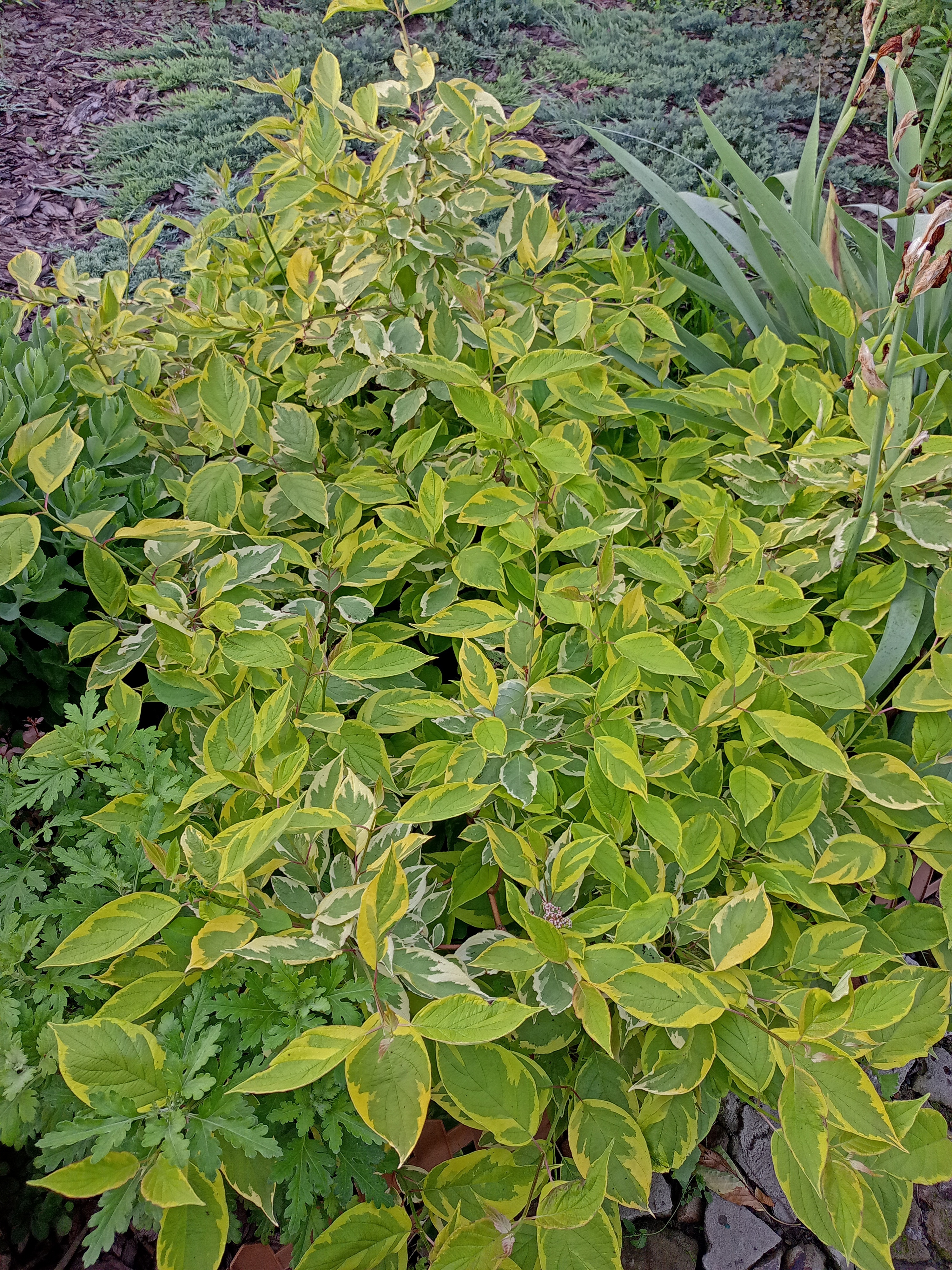 Дерены (и зеленолистная, и пестролистная формы) чувствуют себя в жару неплохо. Листики могут терять холеный вид, подсыхать.Так как полив обеспечен, я не знаю, как будут они себя вести в тотальную засуху. Но в регионах с регулярным/периодическим естественным поливом будут чувствовать себя неплохо.Кусты довольно разлапистые, какую-то форму придать им мне пока не удается. Хотя, возможно, в массиве будет более симпатично.Вполне подходит для малоуходного сада.Подходит для сада 4-х сезонов, очень декоративен зимой.Цветет симпатично — на фоне зеленой листвы соцветия еще выделяются, а на фоне пестрых листьев теряются.Особых болезней не замечено, но я при профилактических обработках плодовой части сада обрабатываю еще и все цветники оптом. На всякий случай.Стрижется хорошо, но еще быстрее отрастает.Морозостойкость не удалось проверить, но в эту зиму спокойно выдержали -22 при сильном ветре и без снега.