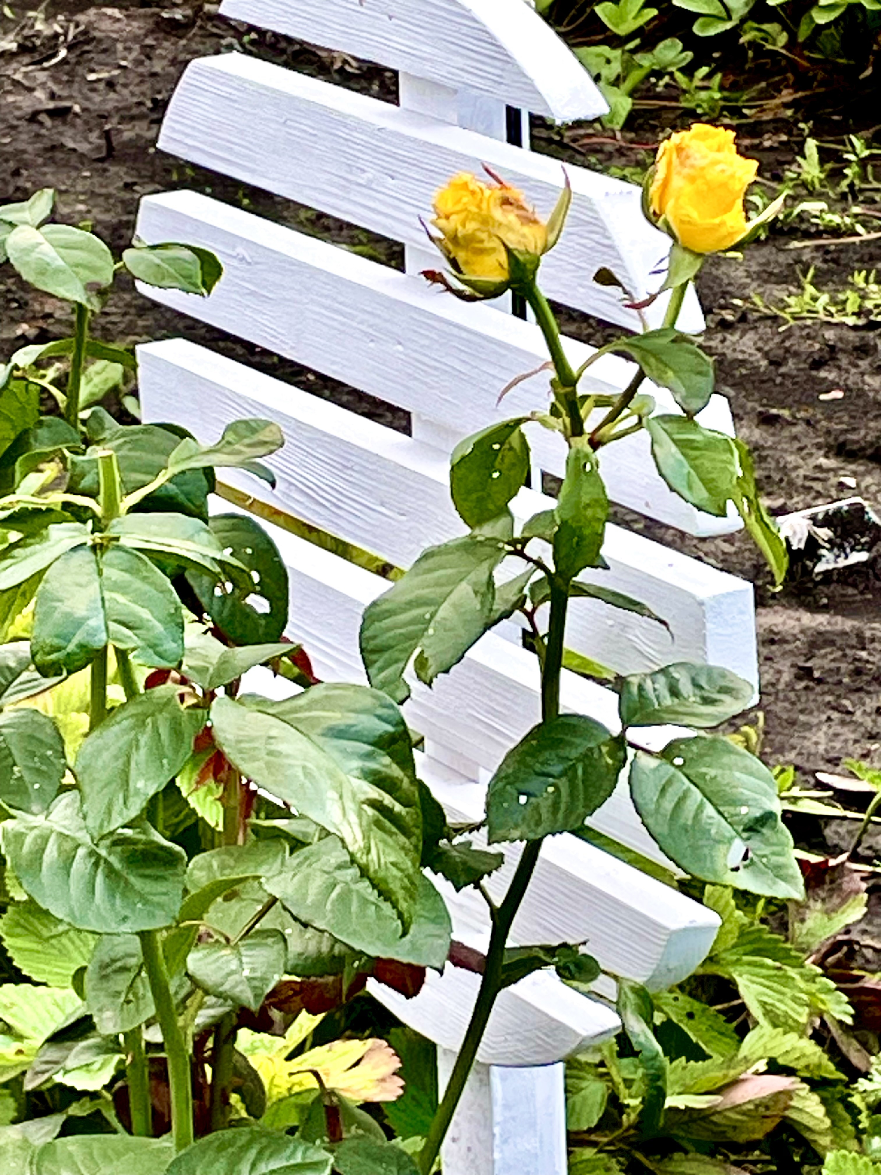 Заключительный этап. Чтобы стоечка крепко стояла в земле, подготовил небольшой металлический прут, его закрепил сзади стоечки. Наше «Деревце» получилось достаточно устойчивым. После произвел покраску всей стоечки акриловой белой краской в два слоя.