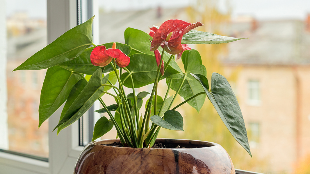 Этому растению нужен рассеянный свет, высокая влажность и тепло — при сквозняках он быстро теряет листья. Раз в месяц можно протирать листья влажной салфеткой, чтобы растение свободно «дышало» и сохраняло блеск. Зато при правильном уходе антуриум цветет почти круглый год.