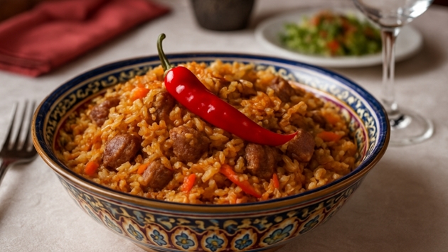В меню заведения — несколько видов плова, манты, блюда из теста и приготовленные на мангале, супы и закуски. В интерьере используются южные мотивы, яркие цвета.