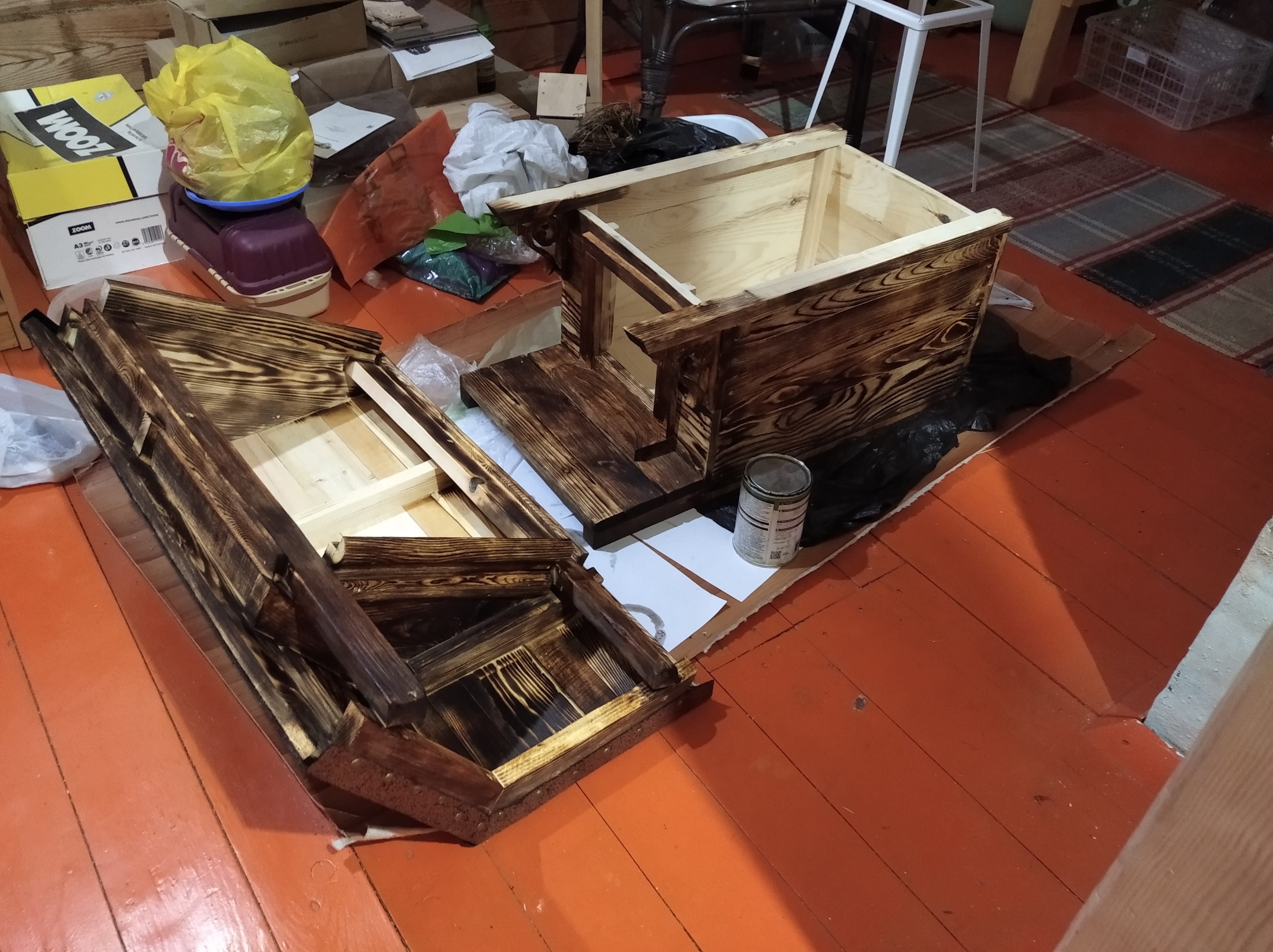 Честно сказать, это трудозатратно. Винный домик, он ведь маленький, а для кошки домик нужен побольше. Кроме того,