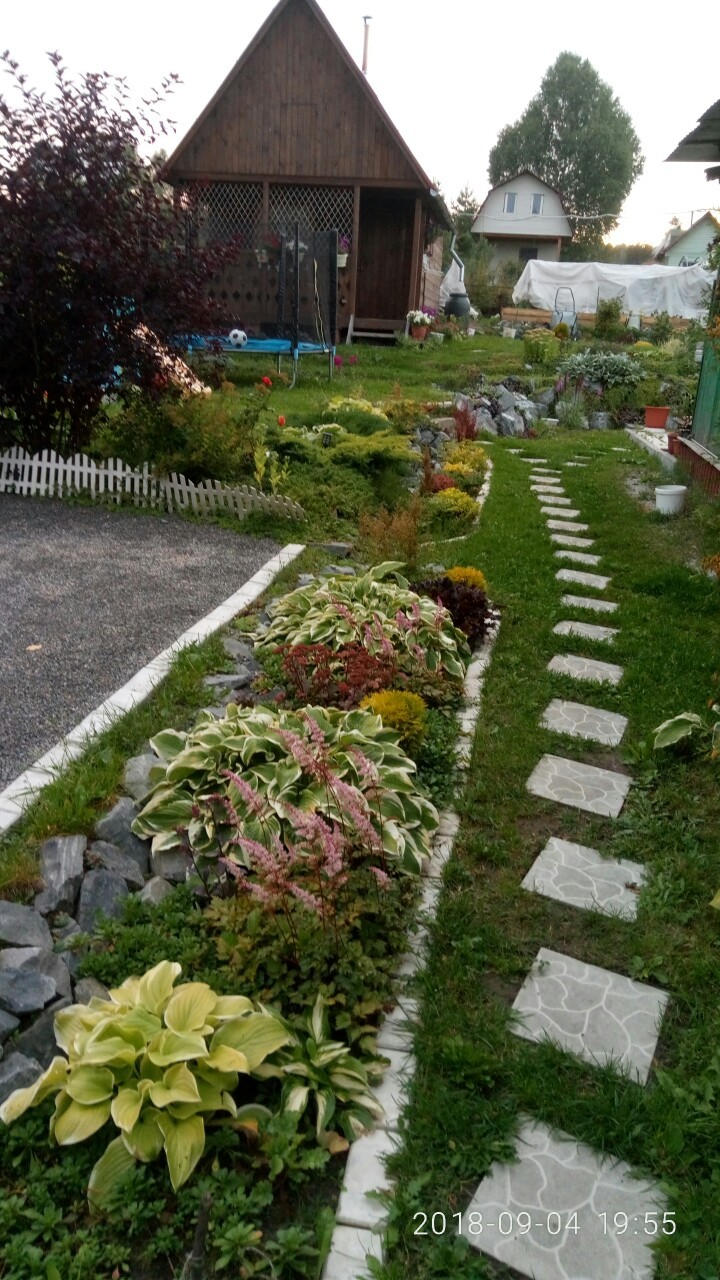 Отцвели хосты и астильба Вайс Глория. Ей на смену пришли две другие, которые зацветают в конце августа и цветут до конца сентября. Зацветает и темнолистный очиток, имя которого я, к сожалению, не знаю.