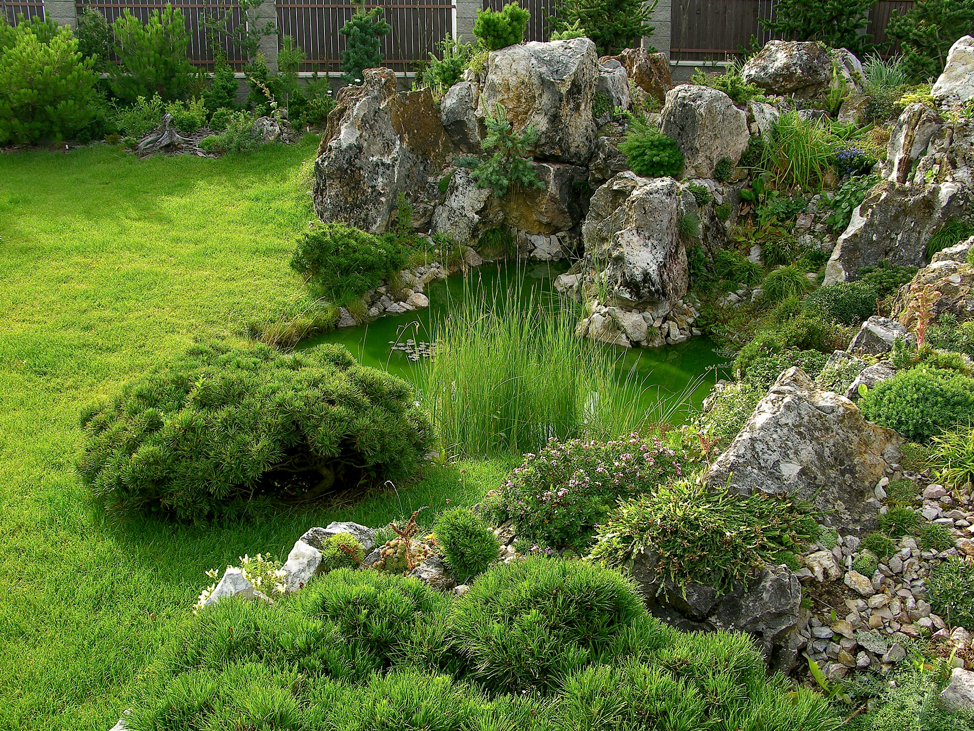 Можно превратить открытый участок во фрагмент горного пейзажа Как известно, в высокогорьях можно встретить фантастические и изысканные пейзажи: хвойные из-за ветров, лавин и холода на большой высоте не могут развиваться в полноценные деревья, напротив, они превращаются в изящные низкие растения в стиле бонсай. Общим фоном таких пейзажей непременно служит камень – его должно быть достаточно много, и он не должен выглядеть «кучкой» в углу участка – это самая частая ошибка при строительстве альпинария. В горах камни «рассыпаны» на большой площади, пусть даже фрагментарно. Поэтому, если вы решили приблизиться к горному ландшафту, неплохо создать альпинарий с несколькими вершинами или несколько удалённых друг от друга каменистых горок с отдельными вкраплениями крупных камней между ними для зрительной связки.