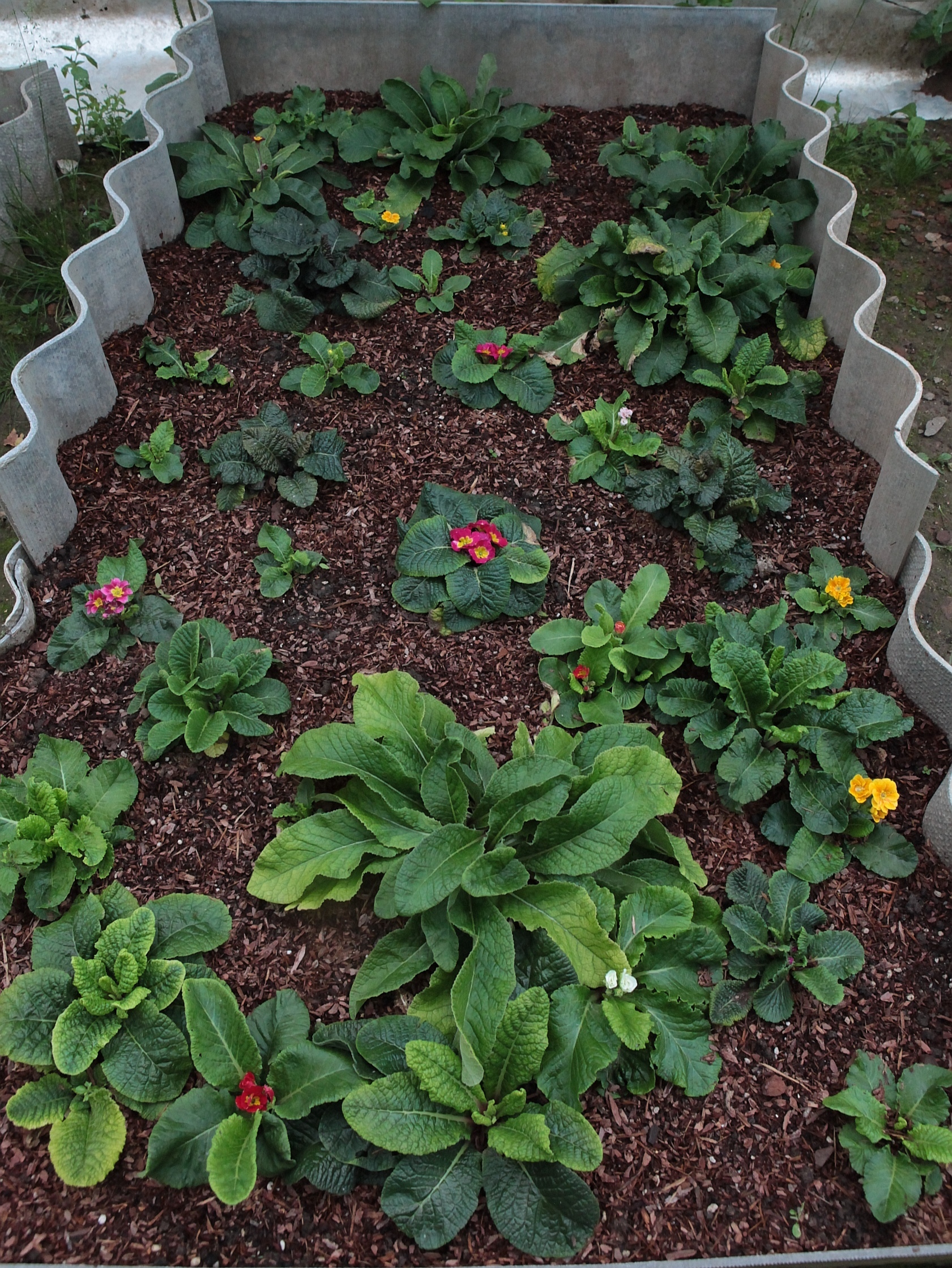 Чтобы ветер не сдувал укрытие и для ограничения попадания осадков, накрою листами шифера до снега. После образования снежного покрова шифер сниму и закидываю на примулы снег. В общем, всё то же, что и с листовым опадом.