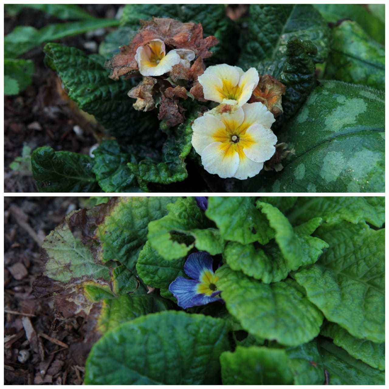 В сентябре примулы обычно ещё цветут, а вот с октября начинаю их готовить к зимовке, всех. При необходимости пересаживаю/рассаживаю. Осматриваю все листья и цветки, если нахожу признаки инфекций, принудительно прекращаю цветение — срезаю цветоносы под корень, а если есть, то и поражённые листья — тоже.