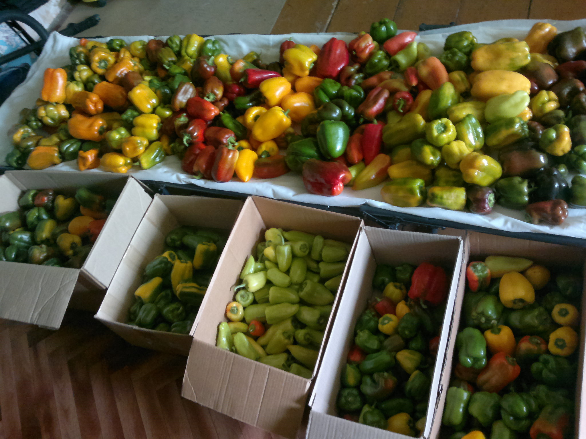 Ну вот, на сегодня, 11 число, перец созрел практически процентов на 90, сейчас по-быстрому все собираем, заносим-раскладываем и начнем готовить парничок к следующему сезону (обработать, обеззаразить, просеять...)