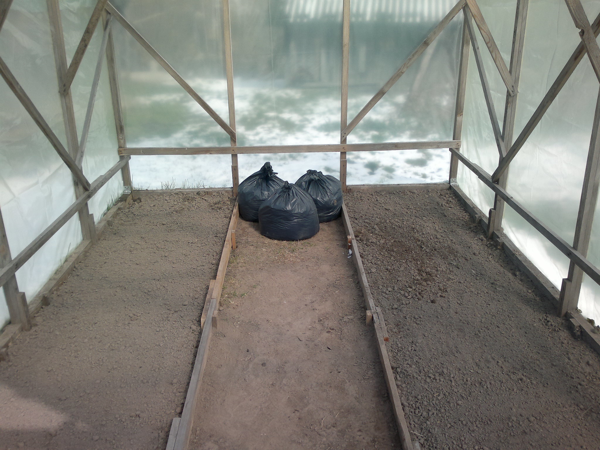 К подготовке парника мы приступили в конце марта, как раз снежку так слегка насыпало, морозец освежающий такой, бодренько щипающий за нос)))