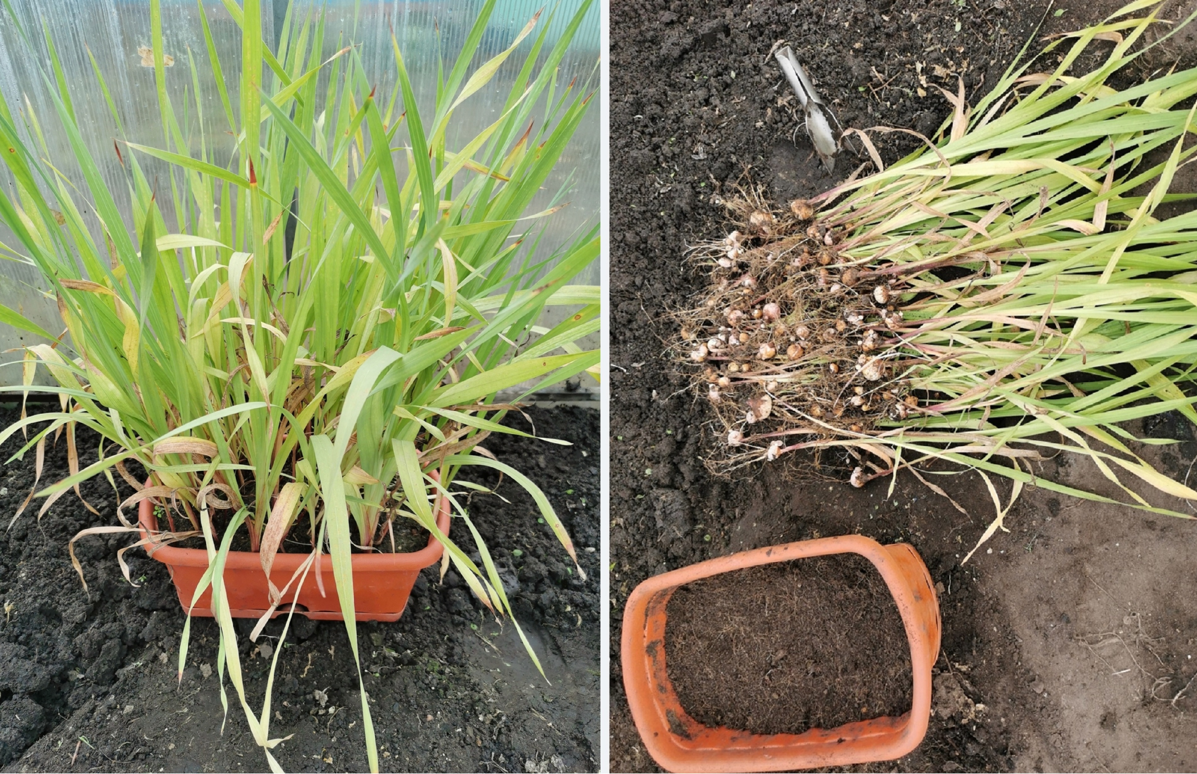 Красиво, не правда ли? Думаю, стоит немного потрудиться, чтобы не отказываться от такой красоты в каждом новом сезоне. Уборка на хранение — важный этап в жизни цветов. Гладиолусы выкапываем в зависимости от погоды, в сентябре-октябре, выбирая по возможности сухой и тёплый день. Выкопанные гладиолусы несколько часов проветриваем и сушим на земле.