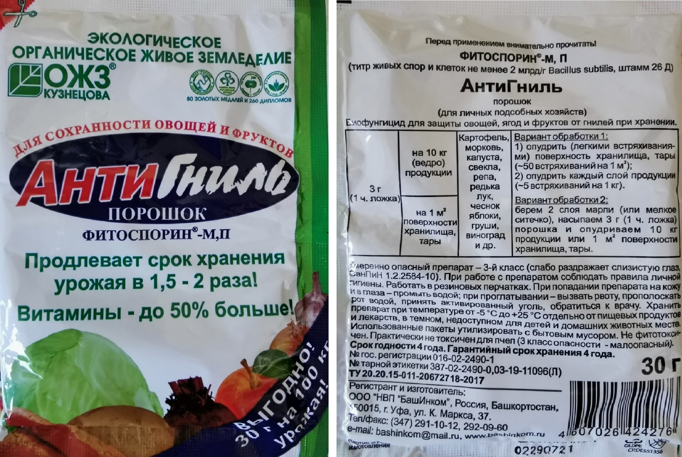После наступления холодов и снижения температуры в сарае до +8...+7ºC, опудриваем луковицы препаратом «АнтиГниль Фитоспорин» ОЖЗ Кузнецова и спускаем на хранение в погреб. «АнтиГниль» — природный биофунгицид, который защищает урожай при хранении от гнили.