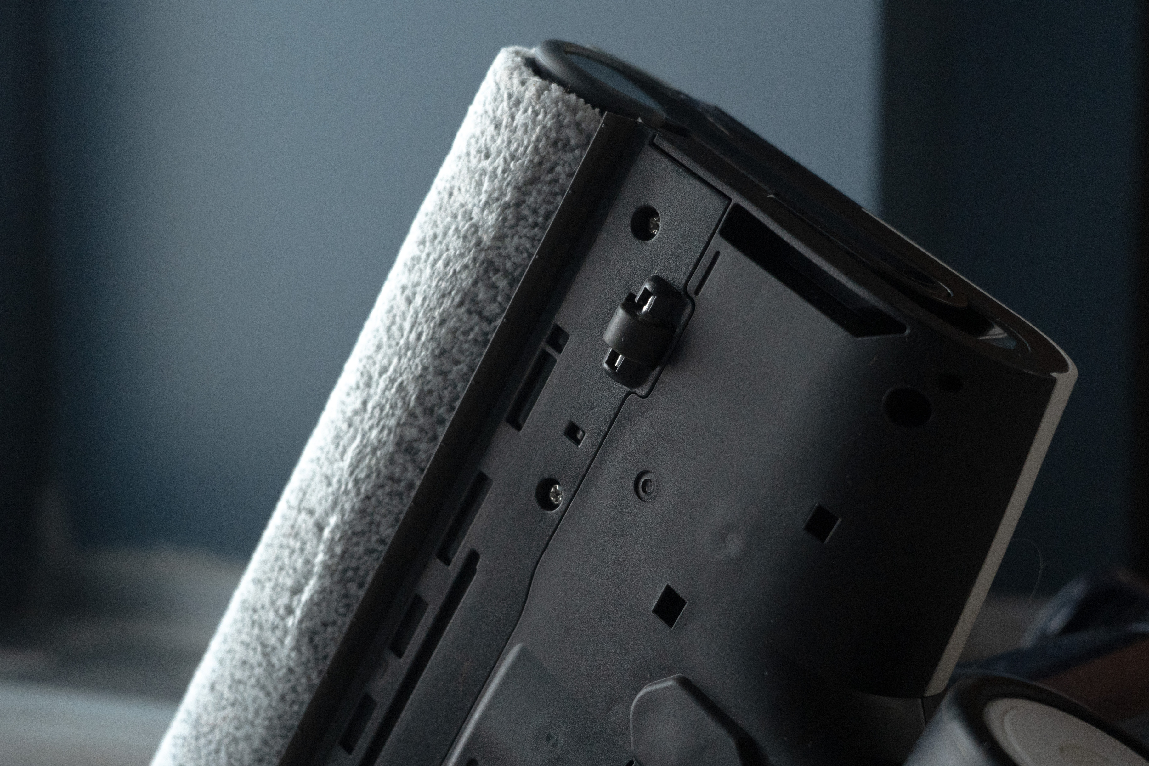 Распаковывая Tineco S6, ловишь себя на мысли, что это скорее гаджет из арсенала вселенной очередной космооперы, но никак не наследник веника и совка. Матовый пластик, приятная тяжесть в руке, и достаточно универсальная внешность, которая выглядит уместно как в квартире из передачи «Квартирный вопрос» образца 2006 года, так и в современных пинтерест-интерьерах. Да и в целом тут как с хорошей аудиотехникой — ее не хочется прятать в шкаф. S6 спокойно можно поставить около стеночки в коридоре, и он не будет мозолить глаза, несмотря на контрастное сочетание черного и белого цветов.