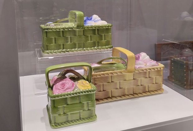 Особый восторг у посетителей вызывают сухарницы в виде кур-наседок с цыплятами, выполненные в натуральную величину, а также икорницы в виде раков и рыб.