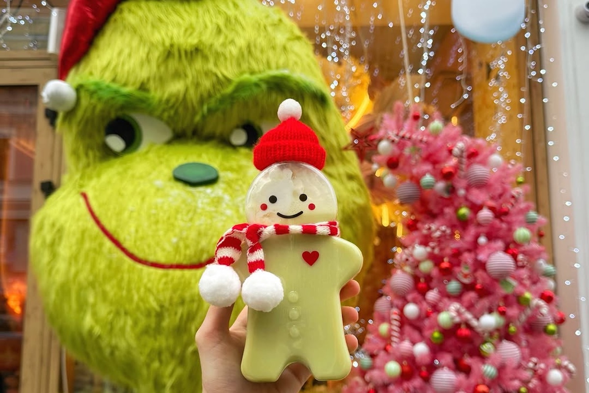 OMG Coffee — чемпион по созданию фотозон. Из года в год там создают самые запоминающиеся входные группы: с метровыми косами, огромными дутыми бантами, гигантскими мухоморами, невероятных размеров пасхальными яйцами. На этот раз амбассадором Рождества, Нового года и зимнего спецменю стал Гринч. Благодаря ему появились эффектная входная группа и спецменю из четырех напитков, включая фирменный зеленый Grinch-mas — матчу с фисташкой и взбитыми сливками.