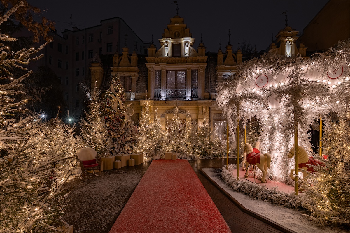 Butler ежегодно превосходит сам себя. Закрытый двор особняка на Патриарших сейчас больше напоминает заиндевелый сказочный лес, посреди которого установлена настоящая рождественская карусель. Длинная аллея из елей ведет к уютной зоне с креслами-качалками, рядом с которыми расставлены подарки. История продолжается и внутри ресторана: здесь помимо интерьера за праздничное настроение отвечают новогодние корзины с панеттоне, конфетами ручной работы и шоколадной елью, а также гастрономические наборы с сырными и мясными специалитетами.