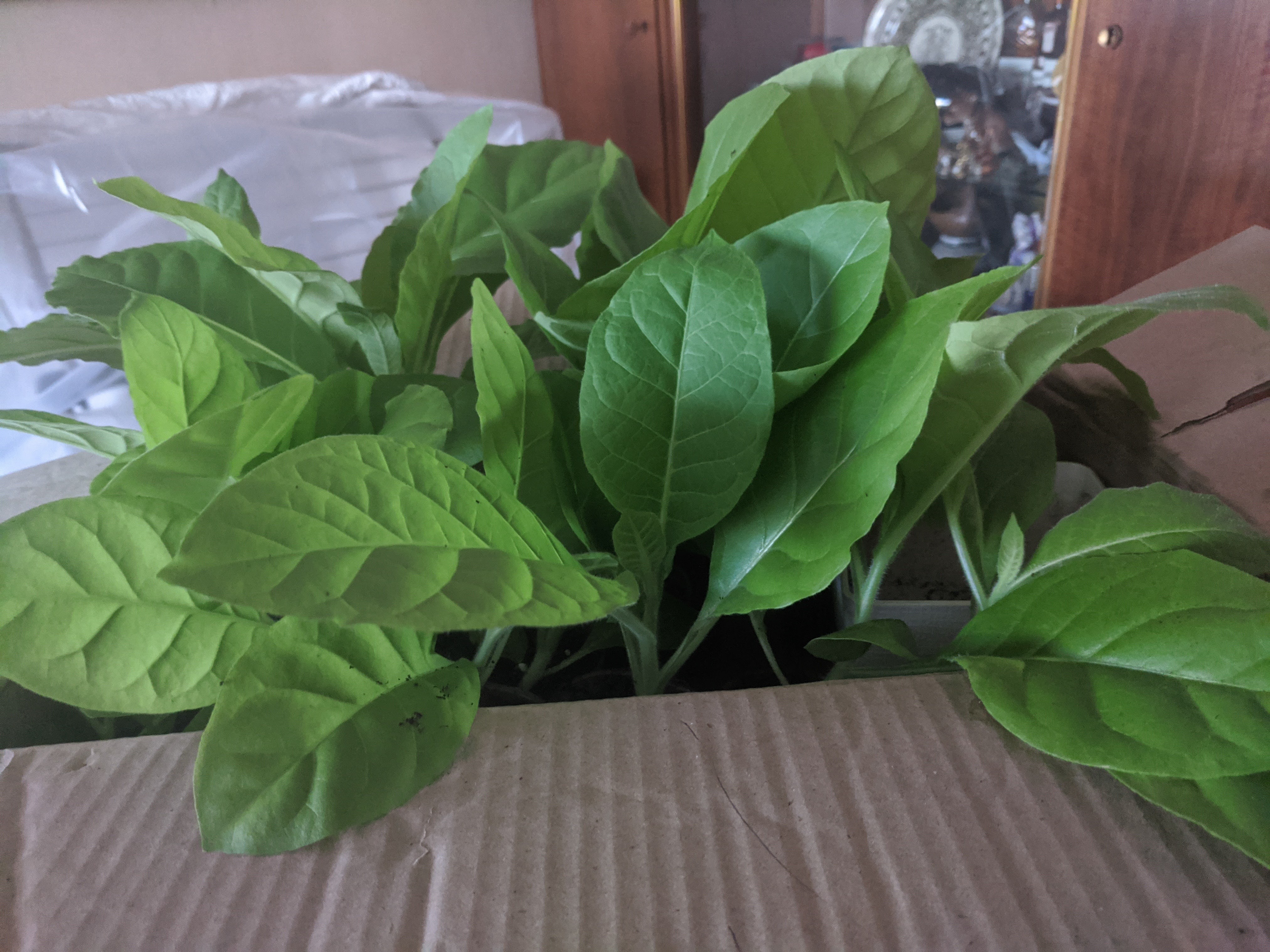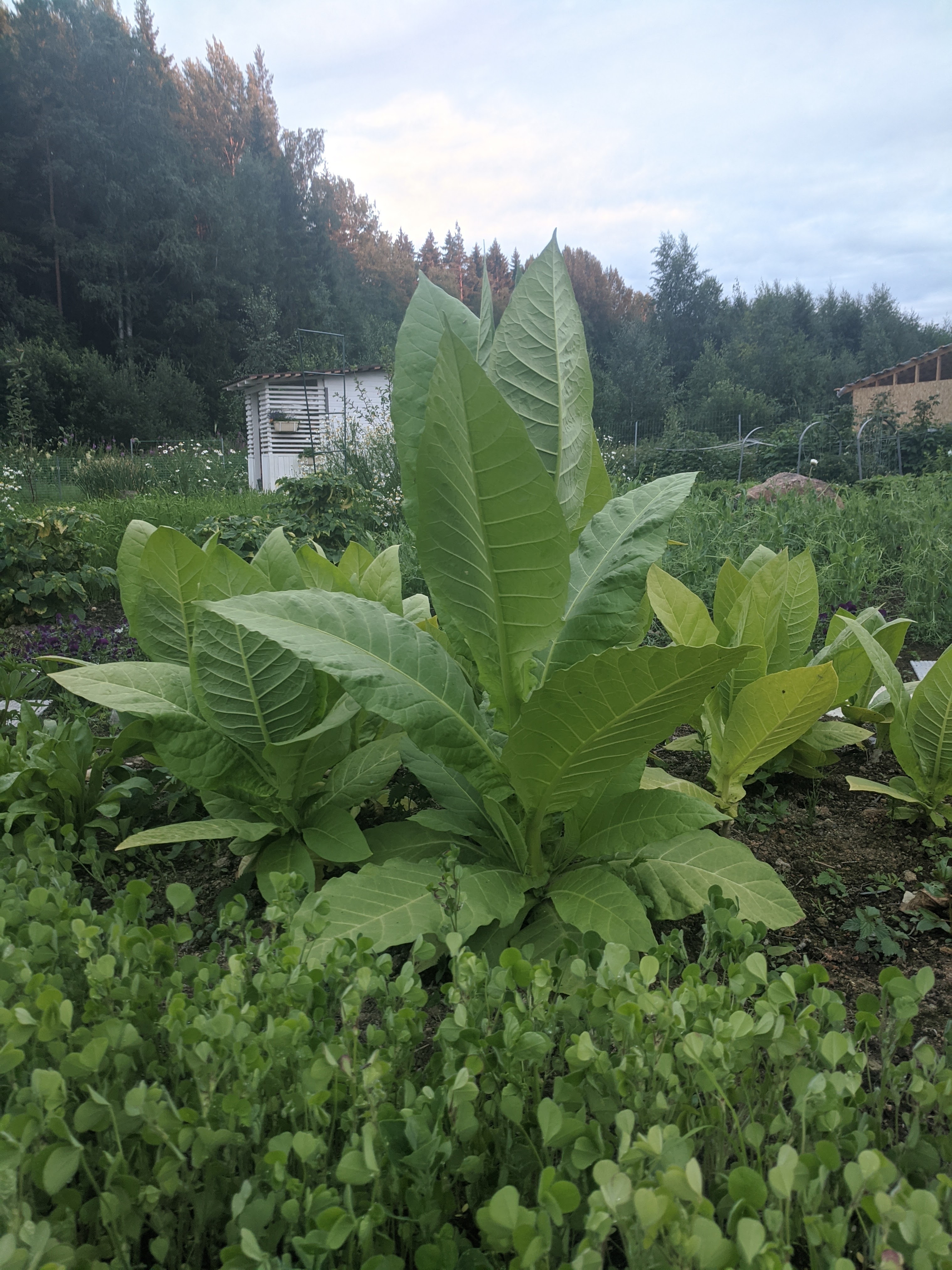 В этом сезоне из любопытства посадила курительный табак. Растения впечатлили своим видом, мощью. А муж решил использовать его по назначению. Лист был собран, высушен и теперь ферментируется в пакете на батарее. В следующем году хочу посадить несколько сортов. Уже придумала куда. Рассада табака займет много места на стеллаже...