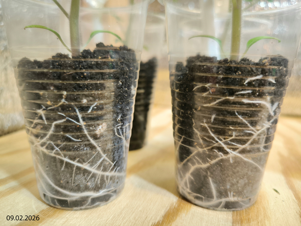 Корневая система — or lack thereof — в стаканчиках с необработанным грунтом.