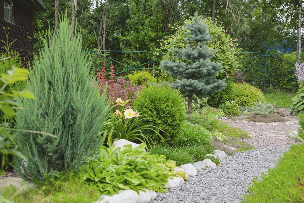 Важно! Какие приемы лучше всего подходят для маленьких участков в Подмосковье или в северных регионах? Чем севернее, тем больше внимания надо уделять районированным сортам многолетников, холодостойким растениям и хвойникам. Также можно смело использовать камень - альпийские горки, сухие ручьи, рокарии.