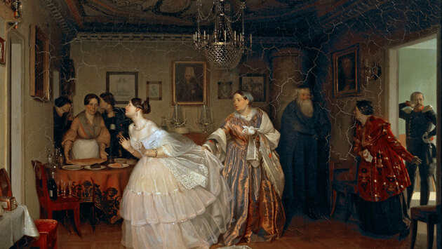 В русских семьях собирать приданое начинали с самого рождения девочки. Как правило, этим делом занималась мать, а после взросления ей помогала и сама дочь. Объем приданого впоследствии становился основным критерием подбора будущей жены: чем его больше, тем более выгодно смотрится девушка, и тем больше существует претендентов в мужья. Девушки из бедных семей не имели приданого, и носили название бесприданницы, отчего шансов выйти замуж у них было совсем мало. О приданом невесты говорили, не скрывая правды, а иногда и выставляли напоказ, с целью привлечения потенциально выгодных женихов.