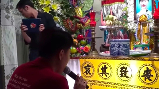 На церемонии Ан надел обручальное кольцо, а другое положил перед фотографией невесты. «Мне столько всего хотелось сделать для тебя, но сегодня я могу сделать только это», — сказал он. После этого молодой человек дрожащим голосом исполнил песню, которую готовился спеть на свадьбе.