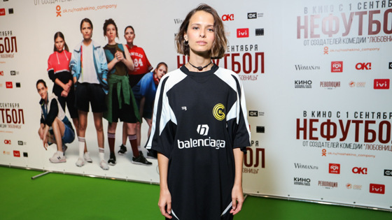 На закрытую премьеру ленты пришла съемочная команда и их звездные коллеги. Любовь Аксенова, исполнившая главную роль, появилась на красной дорожке в спортивной футболке Balenciaga (актриса использовала ее как платье) и серебряных туфлях на платформе со стразами. Сыгравшая с ней Юлия Топольницкая позировала фотографам в total black луке, состоящим из пиджака oversize и шелкового платья.