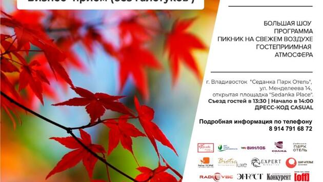 Бизнес-прием без галстуков Open air состоится 1 октября 2022 г. по адресу: «Седанка Парк Отель», г. Владивосток, ул. Менделеева, 14. Открытая площадка Sedanka Place. Съезд гостей с 13:30, начало в 14:00. Dress code: casual, sport сhic.