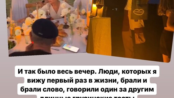 «"Грузинское гостеприимство" и наши мечты в кои-то веки побыть только в кругу семьи слегка не смэтчились. И за стол бесконечно врывались чужие люди со своими тостами и речами. Как раз то, чего мы с Федей не хотели», — поделилась с подписчиками Рита. Без конца отстаивающая свои права артистка призналась, что так и не смогла попросить удалиться надоедливых зевак — то ли боясь обидеть местных, то из вежливости. Впрочем, как оказалось, официально приглашенные гости были не против такой импровизации. А Рита извлекла из ситуации урок: поняла, что так и не научилась выстраивать личные границы. Что ж, у певицы есть еще две попытки!