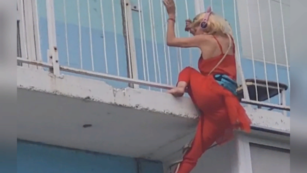 Лазающая по балконам блондинка в красном напугала жителей Новосибирска