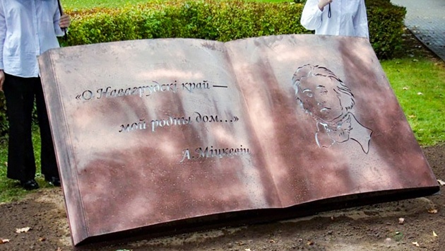 В рамках празднования 225-летия Адама Мицкевича, произведения которого переведены на 30 языков мира, в сквере Новогрудка рядом с дубом, высаженным в честь 200-летия поэта, сообщает БЕЛТА, был торжественно открыт новый арт-объект "Я счастье теперь уж в той книге ищу...".