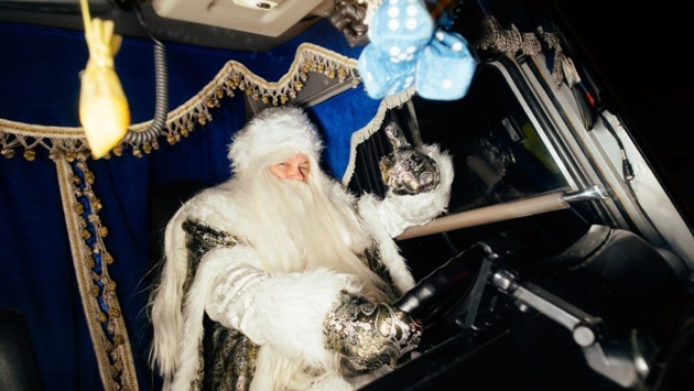 С наступающим Новым годом угольщиков и жителей Кузбасса поздравил необычный Дед Мороз. В праздничный рейс на украшенном яркими гирляндами карьерном самосвале БЕЛАЗ отправился водитель Кедровского угольного разреза Евгений Андреев.