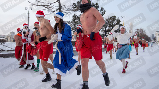 По центру Екатеринбурга пробежались полуголые мужчины в образе Дедов Морозов, а также девушки переодетые в Снегурочек. Об этом рассказал корреспондент URA.RU с места событий.