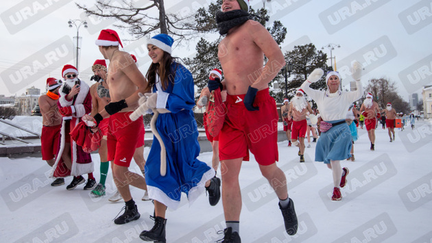 Полуголые Деды Морозы устроили забег по центру Екатеринбурга