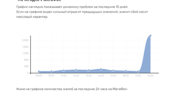 «18.03: количество жалоб — 2 293 тысячи», — передает сервис. Больше всего сообщений поступает из Москвы (21%) и Санкт-Петербурга (17%). В предыдущий день оператор работал стабильно.