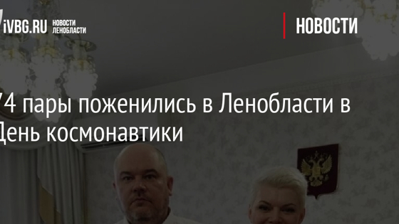 В День космонавтики, 12 апреля, в Ленинградской области официально оформили свои отношения 74 пары, сообщили в ЗАГСе. Сотрудники ЗАГС поздравили новобрачных с созданием семьи и пожелали, чтобы их семейная жизнь была похожа на настоящий космический полет, наполненный счастьем и любовью. А также поделились кадрами счастливых молодоженов. Фото: Управление ЗАГС Ленинградской области Также в ЗАГСе поделились интересной статистикой: в апреле 1961 года в Ленобласти было зарегистрировано 113 новорожденных по имени Юрий. В течение месяца, после первого космического полета — 144, в первые полгода — 541, по окончании года – 975.