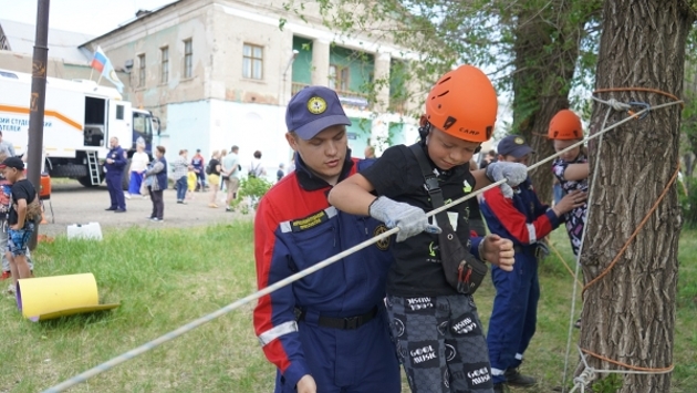 В Орске добровольцы организовали для детей городок безопасности: учили даже альпинизму