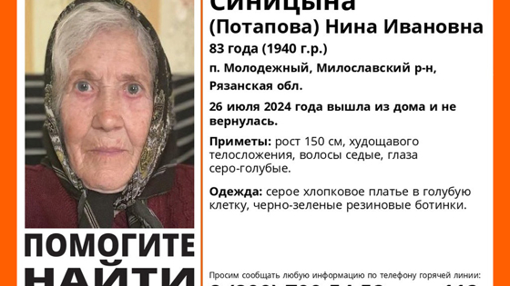Её приметы: рост 150 см, худощавого телосложения, седые волосы, серо-голубые глаза. Она была одета в серое хлопковое платье в клетку, черно-зелёные резиновые ботинки.