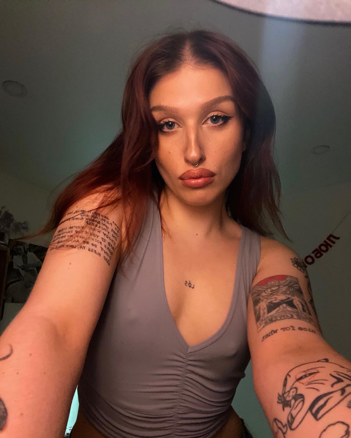 Одну из татуировок мне набил пьяный друг на вечеринке. Еще одну татуировку в зоне бикини я пришла набивать к бывшему парню, хотела его позлить. Есть татуировка LOOVE. С двумя «о», потому что мастер задумался. А еще я набила слово «верность», а потом влюбилась в другого парня, будучи в отношениях. Считаю, что эта татуировка проклята!