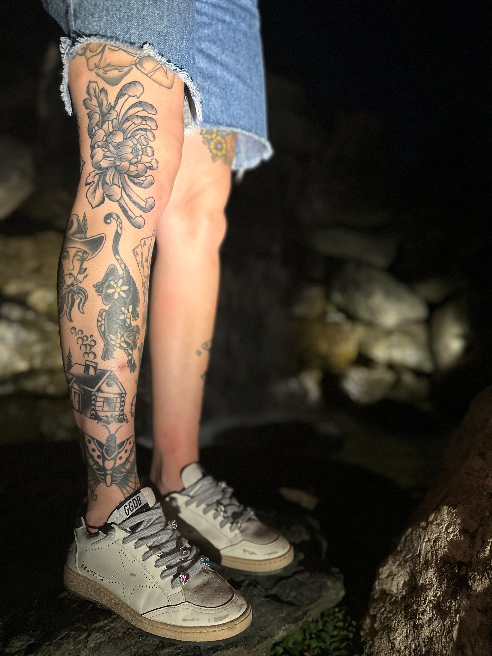 В 2020-2021 годах я делала татуировки практически каждые две недели. Тогда я забила почти все ноги. Сейчас смотрю на свое тело и понимаю, что не хочу больше ничего набивать. Того, что уже есть, мне достаточно. Может, сделаю перерыв. А может, и вовсе откажусь от всего этого. Сейчас на моем теле уже больше 20 татуировок.