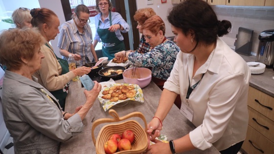 На этот курс записались уже свыше 130 человек в возрасте от 55 лет. В том, что такие специалисты будут востребованы, убедились корреспонденты "РГ", посетив кулинарный клуб Центра московского долголетия "Люблино". Пенсионерки собираются там каждую неделю как раз для того, чтобы вместе приготовить полезный завтрак, и дельные советы специалиста им бы не помешали. На этот раз у них в меню яблочные блинчики и зож-пончики. "Нарезаем яблоки, делаем кляр из муки, яиц и сахара и обжариваем на сковородке, что может быть проще и вкуснее", - руководит процессом Ольга Тихонова. В прошлом учитель физкультуры, она призналась, что с удовольствием посещает лекции нутрициолога. На этой кухне они уже готовили рассольник, уху, суфле куриное, драники, шоколадные кексы, на очереди - рататуй и бутерброды с горбушей.