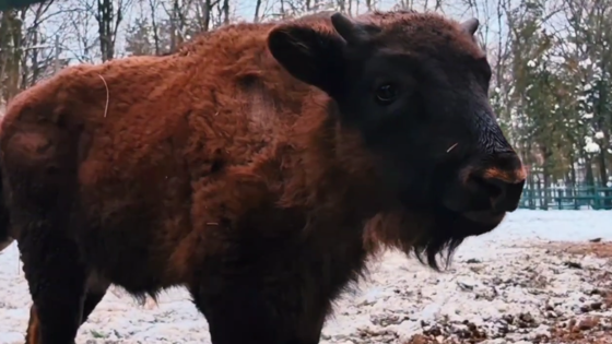 Необычайно активен: ростовские зоологи показали, как юный зубренок реагирует на первый в жизни снег