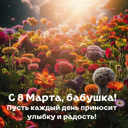 Варианты поздравлений с 8 Марта Для мамы: Мама, твое тепло и забота делают мою жизнь ярче. С 8 Марта, любимая! Дорогая мама, желаю тебе радости, улыбок и цветов! Пусть каждый день приносит счастье! Мамуля, ты — мое вдохновение, мое счастье и моя весна. Пусть каждый твой день будет таким же светлым и прекрасным, как ты сама. Для бабушки: С 8 Марта, бабуля! Пусть каждый день приносит тебе улыбки и приятные моменты! Дорогая бабушка, ты — наше сокровище! Пусть жизнь будет такой же светлой, как твоя душа! Бабушка, с 8 Марта! Спасибо за твою доброту и мудрость! Пусть весна принесет только хорошее настроение! Для дочери: С праздником весны, звездочка! Пусть твоя жизнь сияет ярче тысячи огней! С 8 Марта, маленькая фея! Пусть твоя жизнь будет наполнена радостью и волшебством!