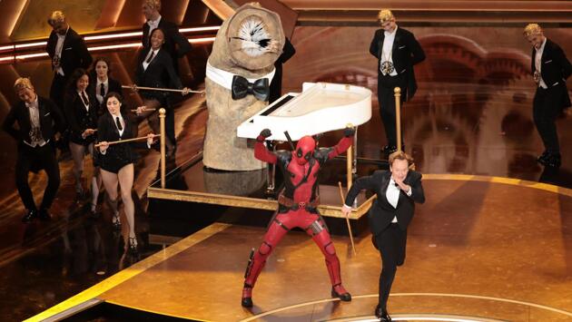 Ждать долго не пришлось: стоило церемонии начаться, как ее ведущий Конан О’Брайен вылез из тела Деми Мур, точнее, ее героини из «Субстанции». Так скажем, лучше это один раз увидеть. По Сети сразу разлетелись шутки о том, что комику это не помогло. А если проект с Деми Мур вы еще не смотрели, то объясним вкратце: в фильме такая процедура приводила к тотальному омоложению, а морщины О’Брайена никуда не делись.