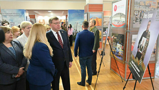 27 марта перед началом 18-го заседания Законодательного Собрания Ростовской области в фойе конференц-зала открылась фотовыставка «Отец Героя», посвященная участникам специальной военной операции и Году защитника Отечества. В открытии выставки принял участие председатель донского парламента Александр Ищенко.