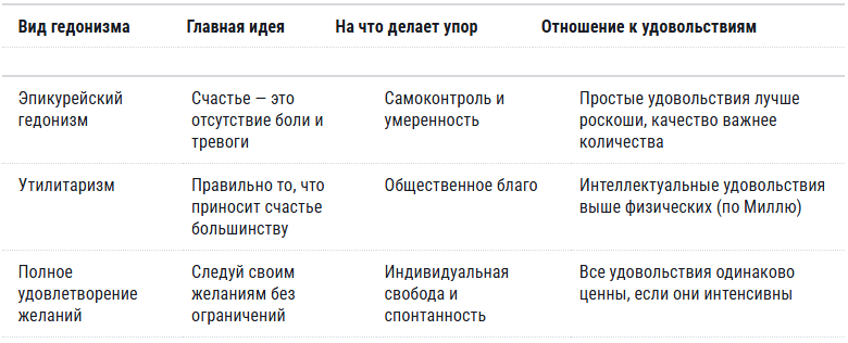 Сравнение разных видов гедонизма