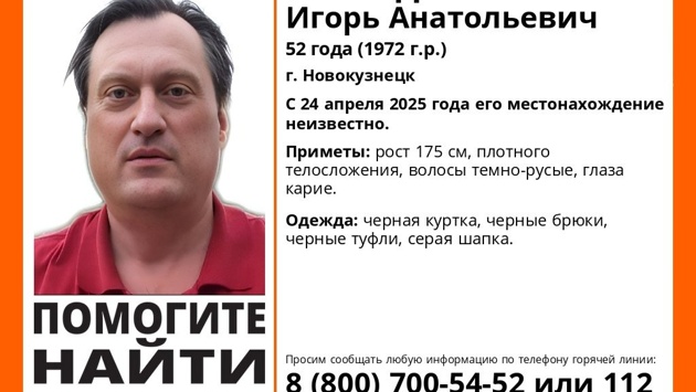 Если вы что-либо знаете о том, где новокузнечанин находится сейчас, сообщите об этом по телефонам 8 (800) 700 – 54 – 52 или 112.