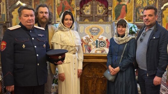 Московские предприниматели вручили подарки и вышитую икону Николая Чудотворца Николо-Сольбинскому женскому монастырю