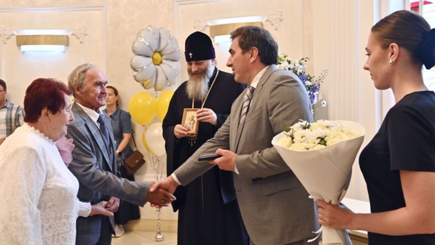 В День семьи, любви и верности по поручению губернатора во Дворце бракосочетаний Новосибирска состоялась церемония вручения общественных наград - медалей "За любовь и верность". Награды восьми супружеским парам вручили заместитель губернатора Константин Хальзов и митрополит Новосибирский и Бердский Никодим. Также семьи - победители регионального этапа всероссийского конкурса "Семья года" - получили дипломы.