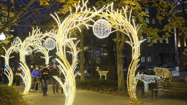 В прошлом году средства на новогоднее украшение центральной улицы выделил меценат и бизнесмен Сергей Галицкий.