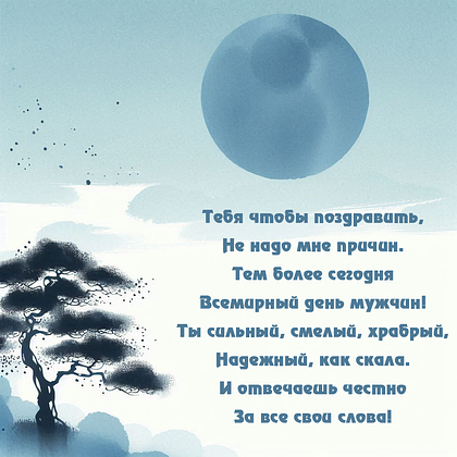 В День мужчин прими поклон,Будь любовью окружен!Пусть дела идут успешно,Счастье будет пусть безбрежным!