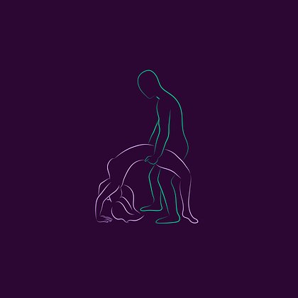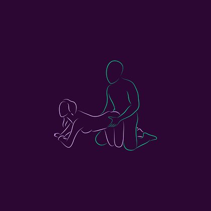 Женщина становится на четвереньки, корпус прямой, согнутые в локтях руки служат опорой. Мужчина сзади на коленях.