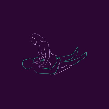 Женщина садится сверху на партнера лицом к нему, корпус выпрямлен, руки на груди или бедрах мужчины.