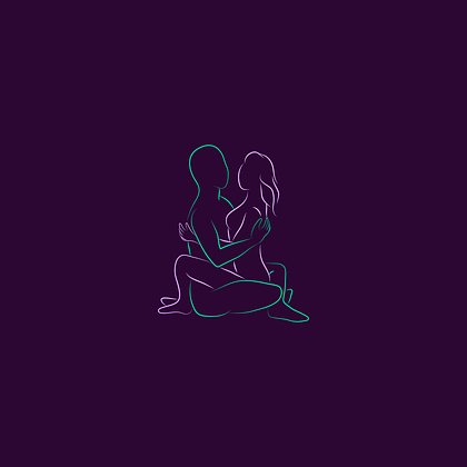 Мужчина сидит скрестив ноги, женщина сверху, лицом к нему, обнимает ногами и руками, лбы могут соприкасаться.